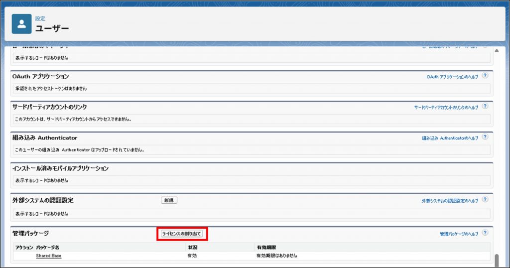 2.ライセンスの割り当て(ライセンス及び権限セット)(必要権限:システム管理者)