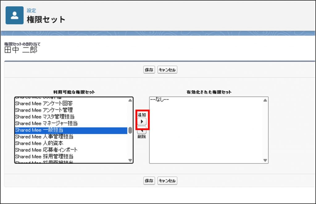 ⑤利用可能な権限セットの一覧から追加する権限セットを選択して、「追加」ボタンをクリックします。