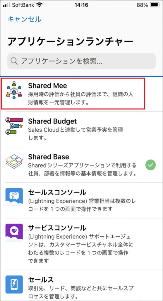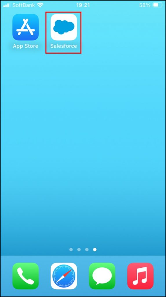 ①Salesforceアプリをインストール後、画面に表示されるSalesforceアプリをタップします。
