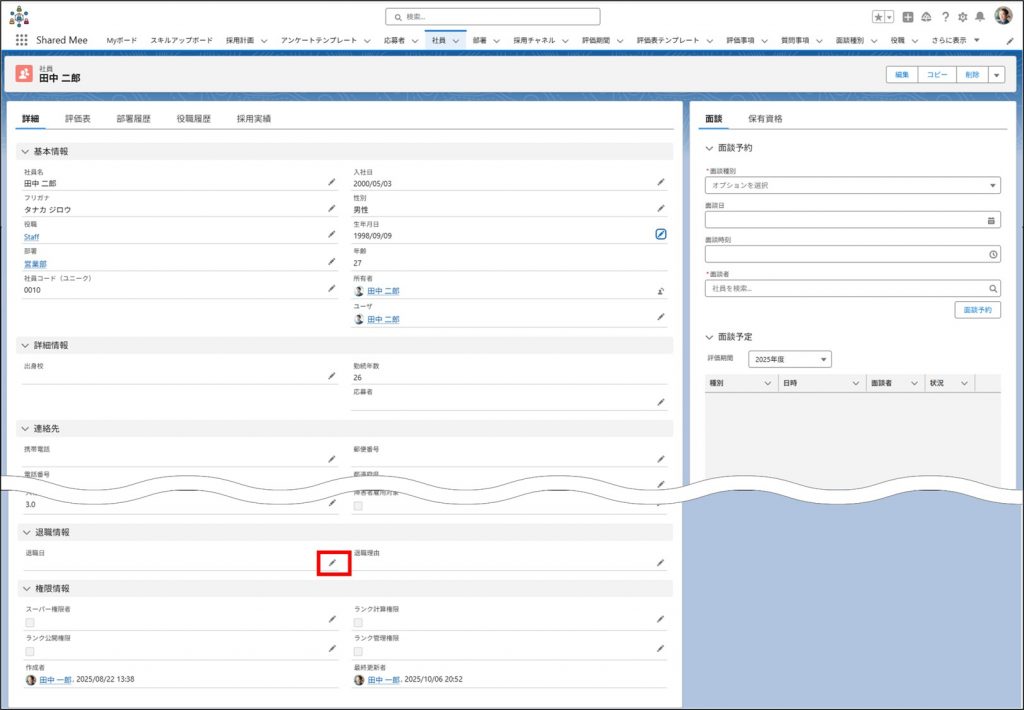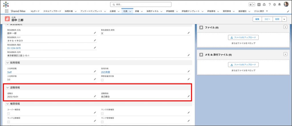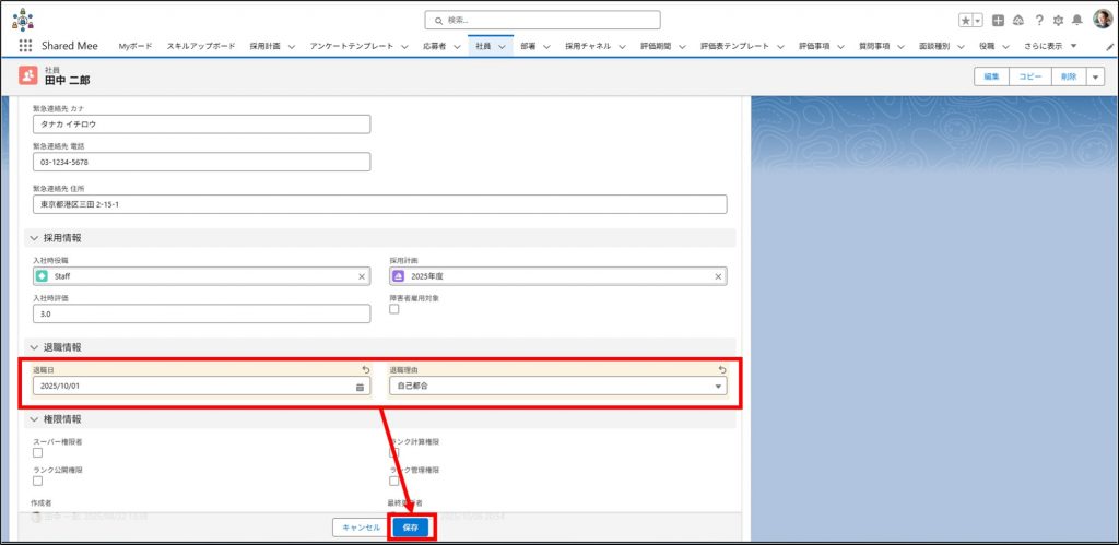 4.社員画面の退職情報を入力する(必要権限:Shared Mee 人事管理担当)