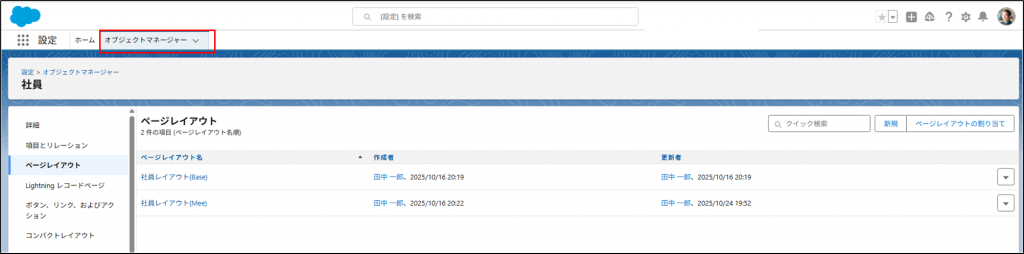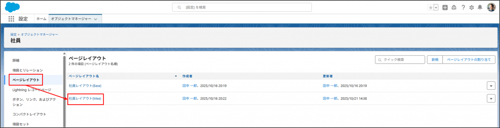 ③社員画面のページレイアウトを選択し、「社員レイアウト(Mee)」をクリックします。