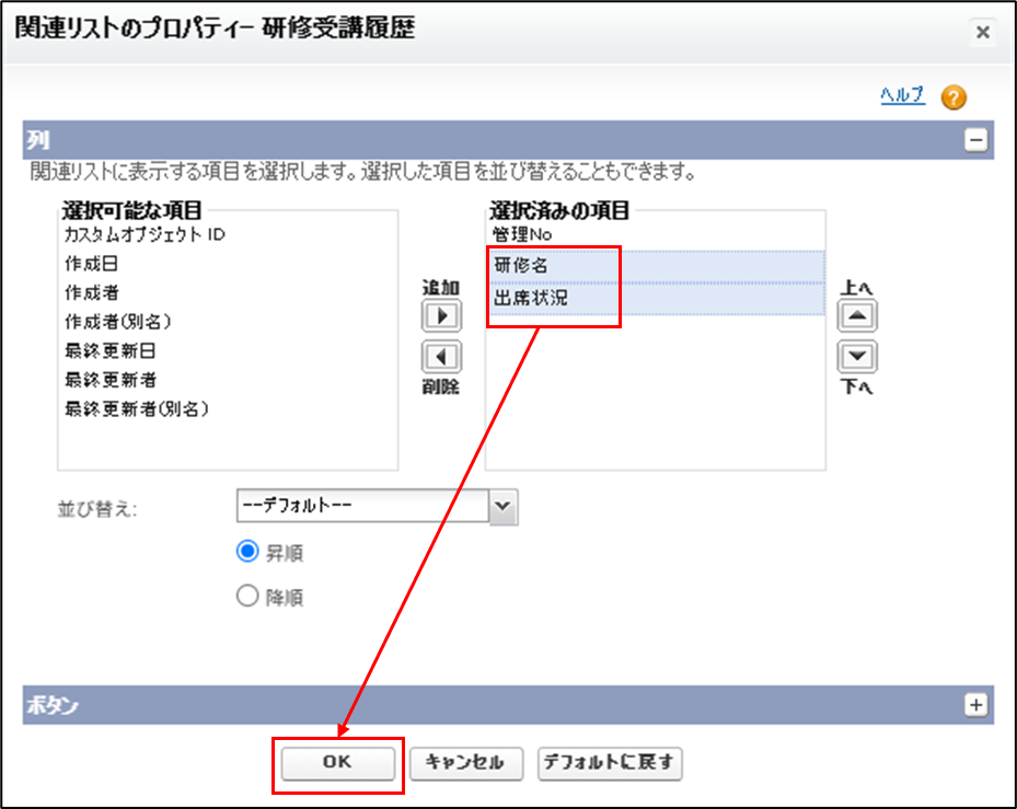 以上で、研修受講履歴の関連リストの表示設定は完了です。