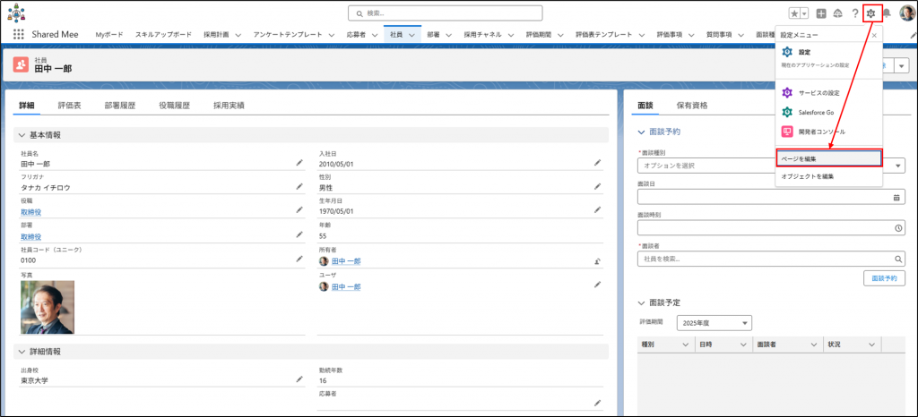 1.レイアウトを変更する(必要権限:Shared Mee システム管理者)
